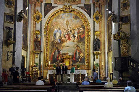 - Pintura al óleo sobre lienzo de gran formato (6,15 x 4,20 m) denominada “Exaltación de la Eucaristía” de Juan de Sevilla Romero y Escalante. 1682-1686. Altar Mayor Iglesia Parroquial de Santa María Magdalena. Granada. Desde mayo a diciembre de 2010.